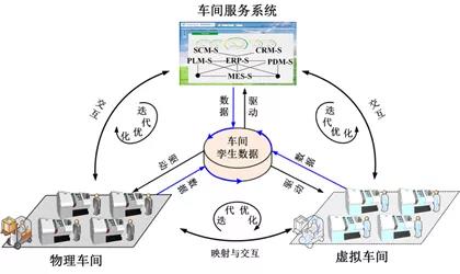 为了无缝集成与融合信息物理空间,实现智能制造,Tao等将数字孪生引入到制造车间中,并首次提出了数字孪生车间(digital twin shop-floor,DTS)的概念:DTS是在新一代信息技术和制造技术驱动下,通过物理车间与虚拟车间的双向真实映射与实时交互,实现物理车间、虚拟车间、车间服务系统的全要素、全流程、全业务数据的集成和融合,在车间孪生数据的驱动下,实现车间生产要素管理、生产活动计划、生产过程控制等在物理车间、虚拟车间、车间服务系统间迭代运行,从而在满足特定目标和约束前提下,达到车间生产和管控最优的一种车间运行新模式。