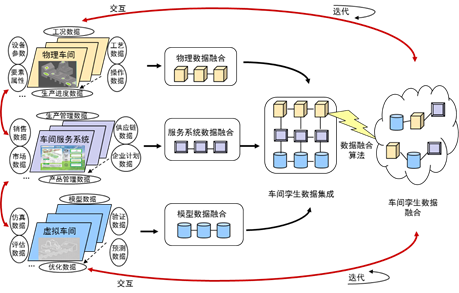 如图2所示,为了实现对DTS中的数据的集成与融合,需要对PS、VS及SSS中的数据进行生成、建模、清洗、关联、聚类、挖掘、迭代、演化、融合等一系列操作,从而形成能够真实刻画和反映车间物理及信息层面的融合数据。