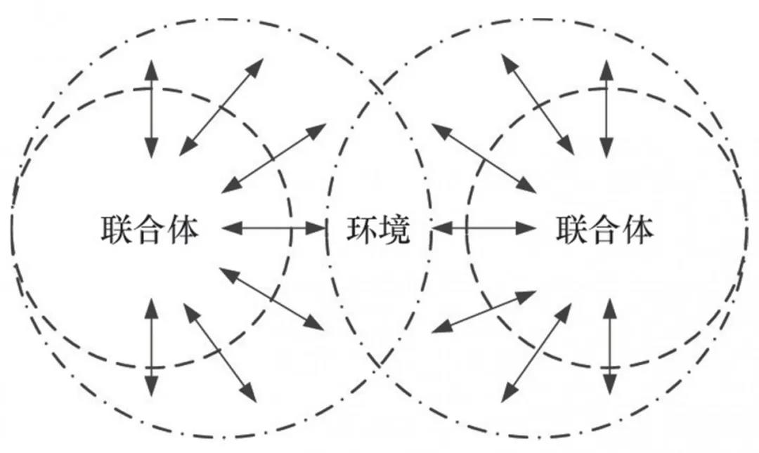 而在体系的整体概念里,联合体与环境之间边界模糊或者不划分边界,它们都是体系的一部分,并且环境是动态开放的。