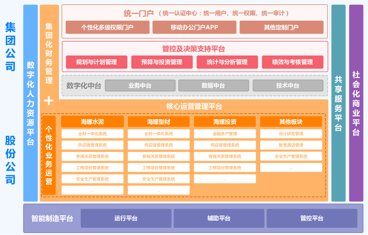过去的几年,海螺集团按照数字化转型总体规划要求,优先重点建设智能制造平台和核心运营管理平台,分步建设共享服务平台、社会化商业平台、数字化人力资源平台和管控与决策支持平台,在数字化转型发展上走出了一条坚实的道路。