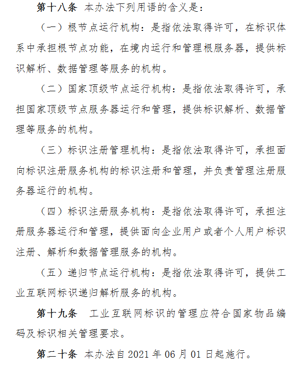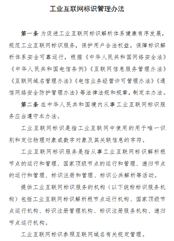 近日,工信部印发《工业互联网标识管理办法》,如下: