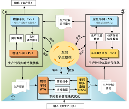 (1)对于SSS:首先,PS的实时状态数据驱动SSS对生产要素配置进行优化,并生成初始的生产计划。随后,初始的生产计划交给VS进行仿真和验证。在VS仿真数据的驱动下,SSS反复地调整、优化生产计划直至最优。
