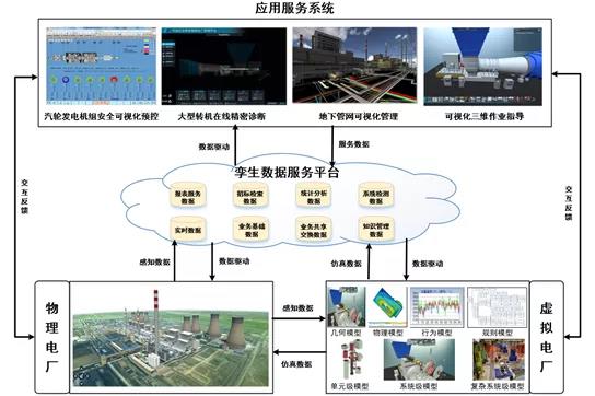 火力发电是目前我国最主要的发电方式。由于火力发电厂需要长时间运行,并且工作环境复杂、温度高、粉尘多,电厂设备不可避免地会发生故障,因此实现电厂设备健康平稳地运行从而保证电力的稳定供给及电力系统的可靠与安全具有至关重要的意义。为实现上述目标,北京必可测科技股份有限公司开发了基于数字孪生的电厂智能管控系统,如图4所示,实现了汽轮发电机组轴系可视化智能实时监控、可视化大型转机在线精密诊断、地下管网可视化管理以及可视化三维作业指导等应用服务。[2]