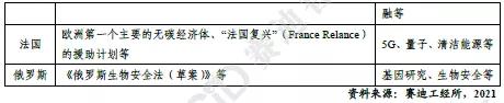 全球疫情蔓延,各国普遍意识到生命健康相关技术对国民经济健康可持续发展的重要性。“十四五”期间,生物安全、基因治疗、疫苗研发等生命健康技术成为各国技术发展和突破的重中之重。英、美等国防控疫情不力,国内经济受冲击较为严重,疫苗研发和药物研制已成为其科技战略重点之一,均主张提高财政投入。俄罗斯在出台《生物安全法》的同时,不断加大基因技术攻关力度,提出要不断完善基因技术路线并建立基因信息库。日本科技战略也非常关注生命健康领域,侧重于疾病的超早期预测和预防。