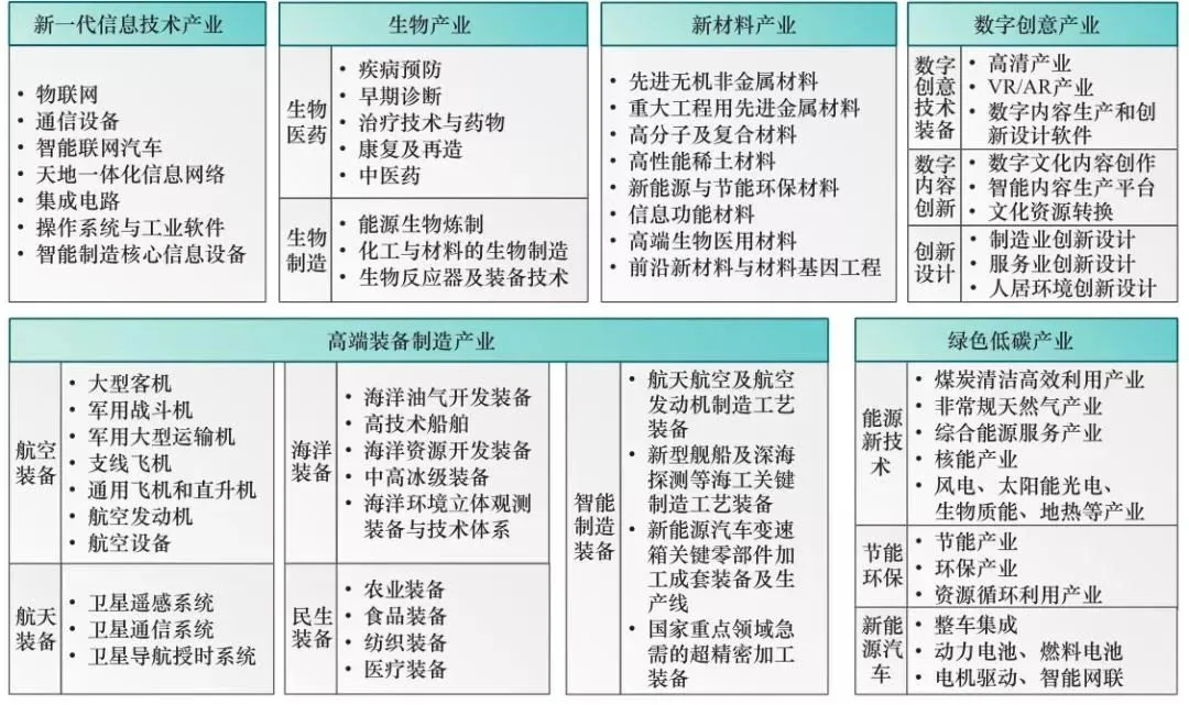 《国务院关于加快培育和发展战略性新兴产业的决定》提出了我国战略性新兴产业概念,确定的培育和发展重点方向为:节能环保、新一代信息技术、生物、高端装备制造、新能源、新材料、新能源汽车。