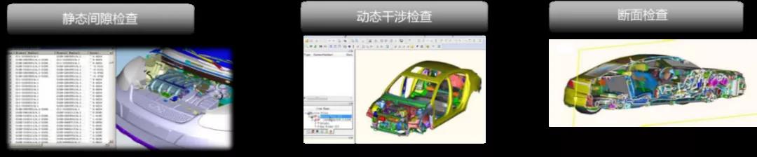 基于整车CAD BOM配置,对整车的物理集成进行虚拟评审,实现测量、断面检查、3D批注、静态间隙检查动态干涉检查,以及可视化报告;定义静态检查标准,按照整车舱室划分,考虑不同车型、同动力总成、不同配置等因素进行定义;定义整车虚拟评审框架,虚拟评审流程;建立远程协同评审机制及流程。