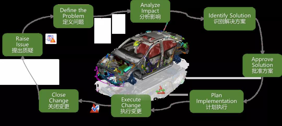 构建全新的满足定制化需求的车型配置选装管理模式;基于中央制造BOM集中管控,实现面向多基地生产的制造管理模式;打通上下游(工程、制造、售后)协调一致的的变更实施管控机制;基于售后工程介入工程方案评估的同步工程设计模式。