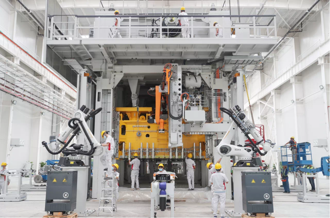 冲压车间采用世界最先进德国舒勒伺服高速冲压线,打造智能互联全自动化工厂