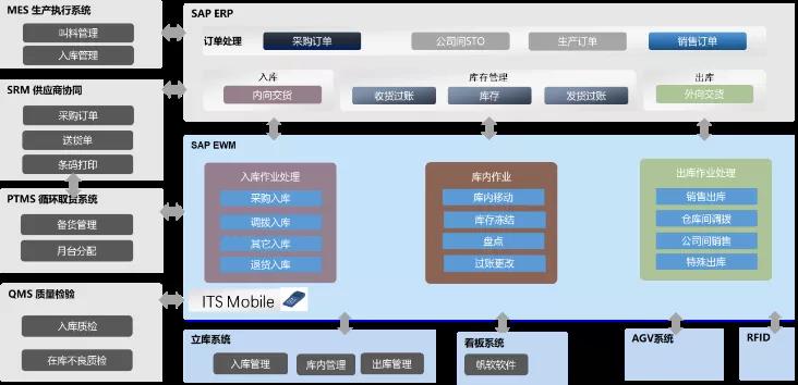 恒大汽车生产物流系统由PTMS、SRM、EWM、MES系统构成,基于智能化、网联化、数字化的生产目标,打造基于工业4.0标准下智能驾驶舱管理系统,实现零部件从供应商端到运输、入厂及上线的全流程管理PTMS与SRM系统实现了订单与运输精细化管理,EWM系统有效支持物流仓储管理业务,集成系统的智能交互,为无人化、柔性化生产提供了强有力的网联调度支持。