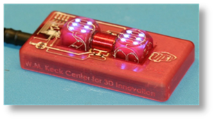 (5)智能元件监控工艺过程。在美国德克萨斯大学,W.M.Keck中心的Wicker教授团队研发出嵌入了微处理器和加速度计的模具(通过3D打印技术),使得成形过程中更好地监测工艺参数,以保证加工质量,如图13所示。