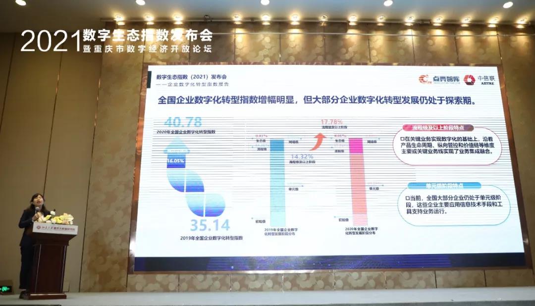 10月16日,点亮智库&中信联在数字生态指数(2021)发布会暨重庆市数字经济开放论坛重磅推出《企业数字化转型指数(2021)》,该指数是《数字生态指数2021》报告的重要组成部分,科学评估和全面展示了全国及区域企业数字化转型现状水平、发展趋势及存在问题。