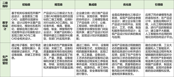 表2 智能制造成熟度评估三级指标及关键特征示例