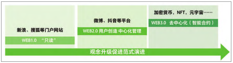 回看互联网行业的发展历程,从Web1.0到Web3.0的发展,去中心化的理念和内容创造的价值突显,这些观念的升级也在促进着范式的演进。从中可以看出,建筑设计与互联网行业虽然在不同轨道上平行发展着,但两个行业的理念随着科技的进步、时代的发展逐渐趋近,新的碰撞必然会迸发出全新的火花。