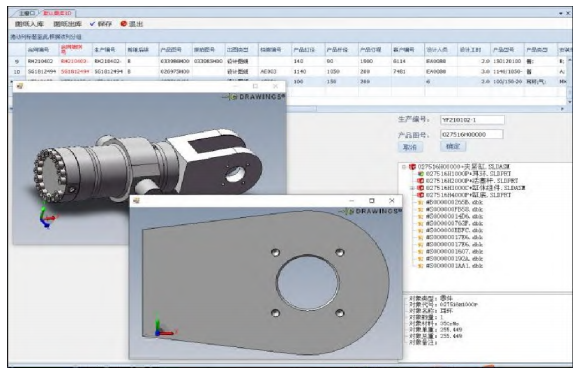 以某液压件厂为例,在其液压缸的设计制造全流程中产生了海量的信息数据,包括订单信息、客户资料、设计数据、CAD图纸、工艺信息和生产数据等,但是往往这些数据储存混乱,管理困难。为了解决这些问题,针对其以研发为核心、出货周期长、非标定制化程度高以及离散制造的特点,结合产品信息整合的需求,作者开发了由图库、工艺库、生产状态跟踪、现场管控和柔性质检等核心模块组成的C/S系统,将PLM与ERP、MES以及SCADA系统集成实现对数据的综合管理,在产品的设计生产全生命周期内自动集成查询、追溯产品流程作业过程的区块化管理。