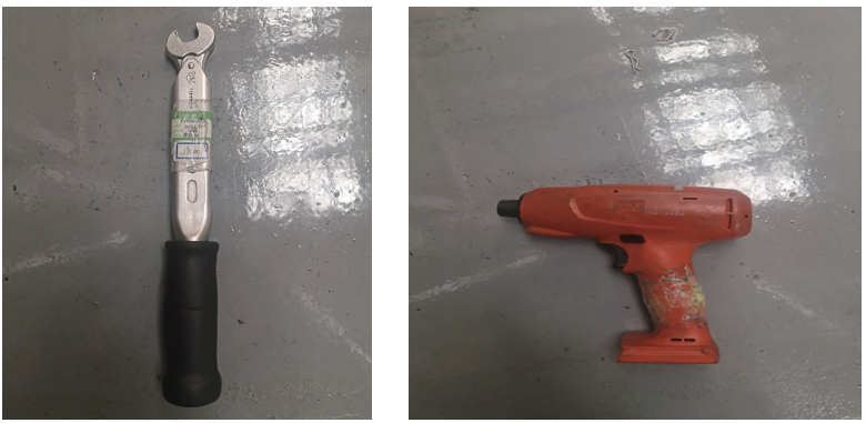 改善前(图 6 左):机舱区域一些零部件螺栓紧固采用手动定扭扳手,员工需手动拧紧,既费时又费力。