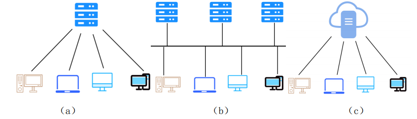 云计算的概念被提出以来,尚未出现一个统一的定义。综合不同文献资料对云计算的定义,可以认为云计算是一种分布式的计算系统,有两个主要特点:第一,其计算资源是虚拟的资源池,将大量的计算资源池化,与之前的单个计算资源(图4(a))或多个计算资源(图4(b))共同形成了大型的资源池(图4(c)),并将其中的一部分以虚拟的基础设施、平台、应用等方式提供给用户;第二计算能力可以有弹性地、快速地根据用户的需求增加或减少,当用户对计算能力的需求有变化时,可以快速地获得或退还计算资源,为用户节约了成本,同时也使资源池的利用效率大大提高。除此之外,在一部分资料中,基于上述云计算平台的云算应用,也被囊括进云计算的概念中。