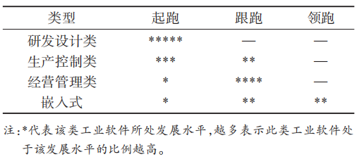 表2 各类型国产工业软件发展水平