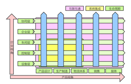 客户需求、产品设计、工艺设计、物料采购、生产制造、进出厂物流、生产物流、售后服务构成智能工厂的横向集成维度;企业内部的设备与控制层、制造执行层、经营管理层、经营决策层构成纵向集成维度;由感知执行、适配控制、网络传输、认知决策和服务平台组成的信息物理系统(CPS)。这3个维度构建了机械制造行业智能工厂参考模型。
