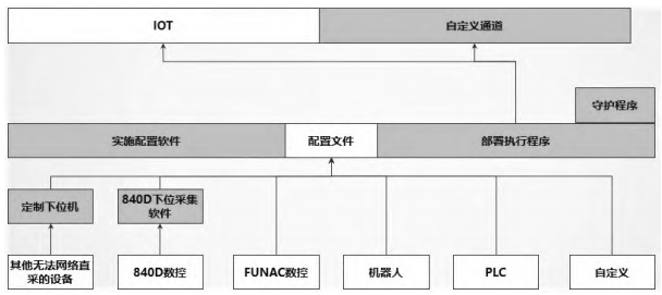 本论文基于工程机械制造行业的特点,开发了一种基于配置的通用数据采集系统,其系统架构如图1所示。该数据采集系统层级包括:工厂设备数采、配置软件、执行程序和服务器。