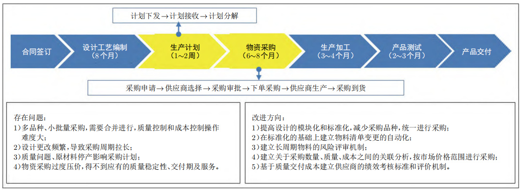 多项目混合的物料采购方式给计划的制订带来很大的困难,导致采购难度大,同时原材料问题、设计更改等都会影响物料采购及计划的制订,具体如图5所示。