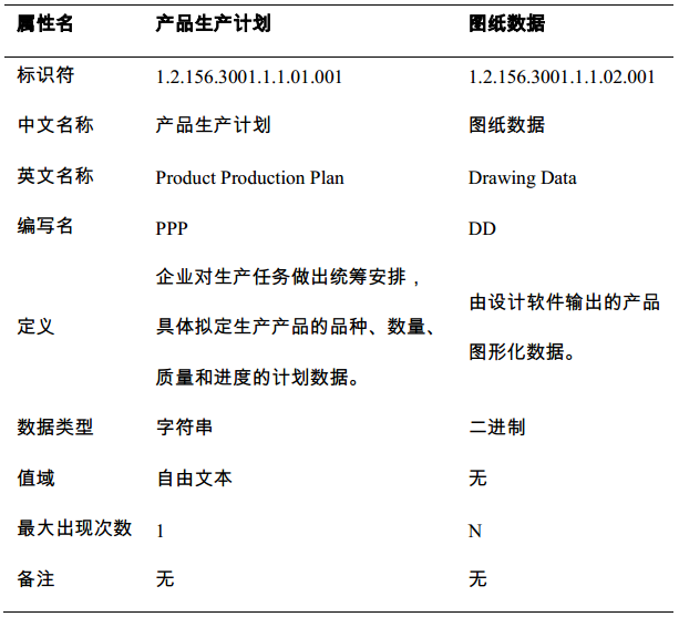 标准GB/T 38555—2020规定了工业产品的核心元数据及其表示方法,适用于工业生产活动中对产品基本信息的分类、编目、发布和查询。本标准分计划数据、设计数据、采购数据、生产数据、销售数据、物流数据和服务数据7类定义工业产品核心元数据。每个元数据用9个属性描述,属性名及其定义见表6。