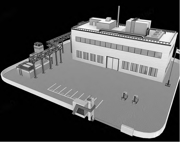 在场景建模选型中,我们选用了ThingJS物联网3D可视化PaaS平台[3]。ThingJS是基于JavaScript的Web端在线协同开发平台,提供了一系列针对园区、车间和模型等多层级动作操作的API,并支持obj格式的三维模型构件的导入和使用,解决了从3D场景建模到可视化展示再到应用交互整个研发过程所需的平台能力,极大地降低了3D界面开发的成本,图例如图1所示。