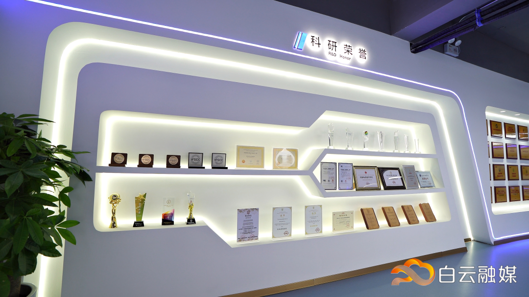 丹姿美学科技研究院的展厅,见证了丹姿集团多年的研发足迹。其中的IFSCC金牌会员证书尤为醒目——这个被称为化妆品界“诺贝尔”的组织,曾在大会上展示水密码的太空藻成果。