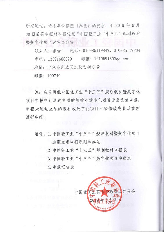 关于开展第三批中国轻工业“十三五”规划教材 暨数字化项目选题立项申报工作的通知
