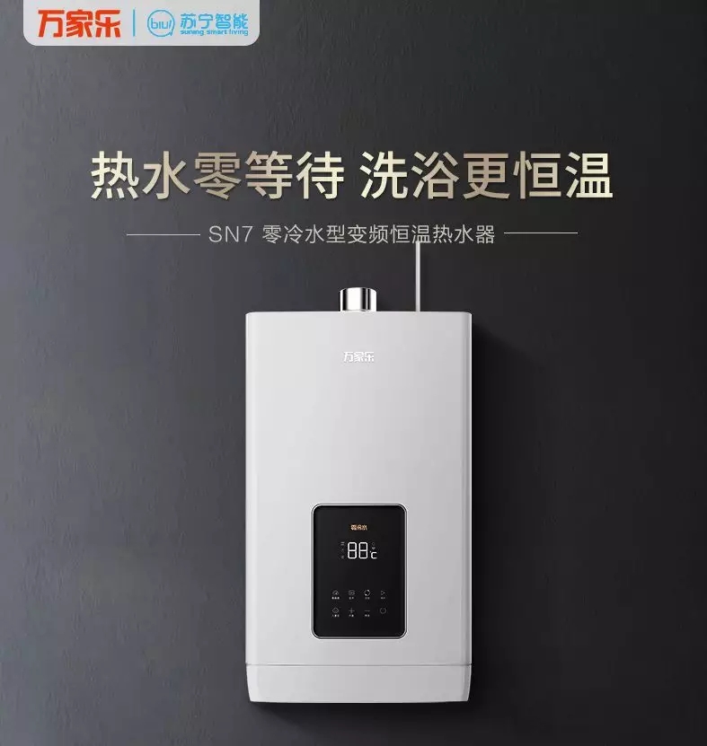 今日,万家乐联合苏宁推出SN7零冷水燃气热水器,作为苏宁智能Biu+生态产品,SN7由双方历时一年多开发,于五一期间在全国苏宁门店上市。