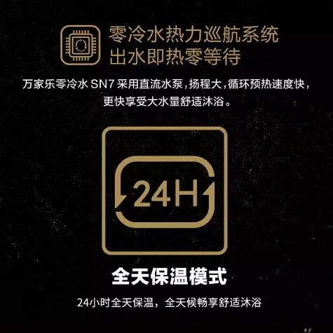 万家乐SN7零冷水燃气热水器搭载“零冷水热力巡航系统”、“启停零波动”、“文火微焰”、“智温感”等前沿科技,实现热水即开即来,解决水温忽冷忽烫及“冬冷夏热”的问题,让用户享受更加智能、安全、恒温的洗浴体验。