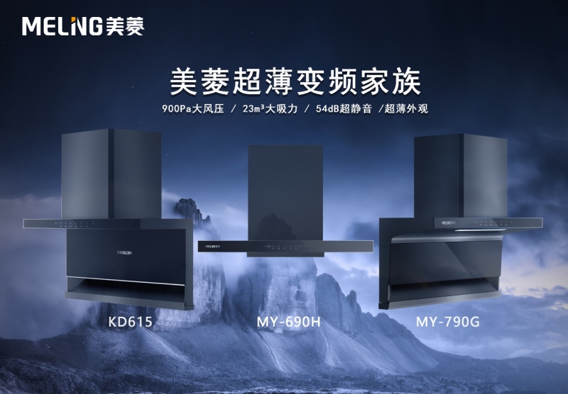 于用户而言,吸油烟机已经不仅仅是一台常规厨房家电,更是提升整个家装格调和生活品质的家电产品,其与家装风格的融合度以及对整个下厨过程的视觉体验感都被用户提升到新的高度,本次美菱超薄变频系列烟机包含3款颜值实力俱佳的烟机,分别为690H、KD615和790G,690H为经典T型外观,突破传统顶吸烟机对视觉的压迫感, 310mm极致纵深,完美隐身于橱柜,显著降低烹饪碰头隐患,同时专利反拉伸油网,在顶吸烟机广域拢吸基础上利用漏斗原理,延伸拢烟深度及广度,杜绝烹饪油烟外逸,同时油网8°倾斜设计,匠心油路保证残油顺畅回落油杯,避免过程滴油问题。KD615及790G为创新跨界外观,顶侧双进烟口,无论是起烟区、升腾区或是扩散区都能够高效净烟,900mm的超长进烟口,全面网罗油烟,有效破解油烟逃逸的难题,真正将油烟机打造成实用与美学的综合体。