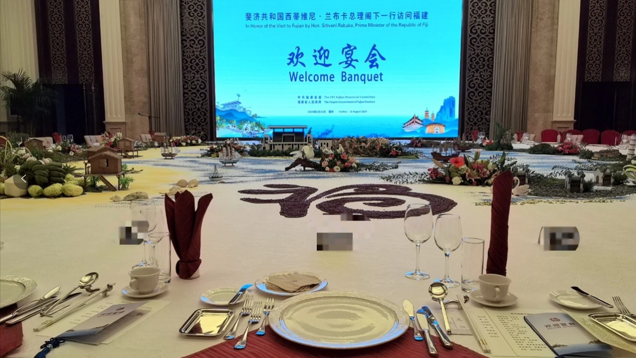 8月12日至21日,斐济总理兰布卡在其第二个总理任期内展开了首次访华之旅。此次访问不仅进一步巩固了中斐两国的友好关系,还在诸多细节上彰显了中国外交的精致与周到。在福州悦华酒店,兰布卡总理使用了国家用瓷生产企业——中国白陶瓷公司、金砖国家领导人会晤“礼品研制突出贡献奖”获得者中国白陈仁海所创《四海一心》金砖元首餐具,这一精心安排无疑为这次访问增添了更多的庄重与尊贵气息。