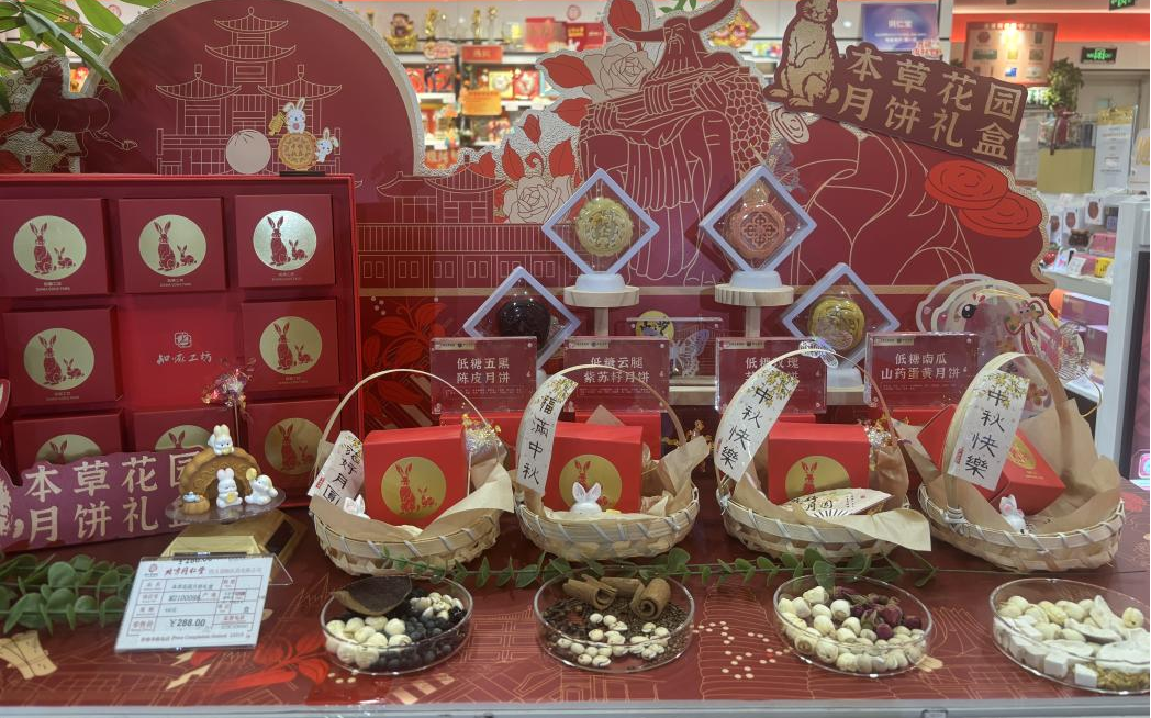 无独有偶,在走访中,记者发现百年老字号药企同仁堂也跨界食品领域,针对现代人对“低糖、养生”的需求,利用药食同源的巧思推出了本草花园月饼礼盒,把莲子、黑芝麻、桑葚、陈皮等药食同源的食材融入月饼,回应当代消费者对健康的全新诉求。