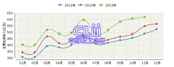 - 2013年1~11月家具行业主营业务收入2014/1/27 9:35:42