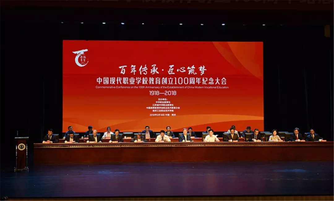 历经百年沧桑,铸就世纪风华。过去的100年,是中国现代职业学校教育发展的一个璀璨的篇章,先贤们用他们的心血,铸就了今日职教事业的辉煌。5月19日,由中华职教社、江苏省中华职教社、中国高等教育学会职业技术教育分会、南京工业职业技术学院主办的“中国现代职业学校教育创立100周年纪念大会”在我校大学生创新发展中心隆重举行。