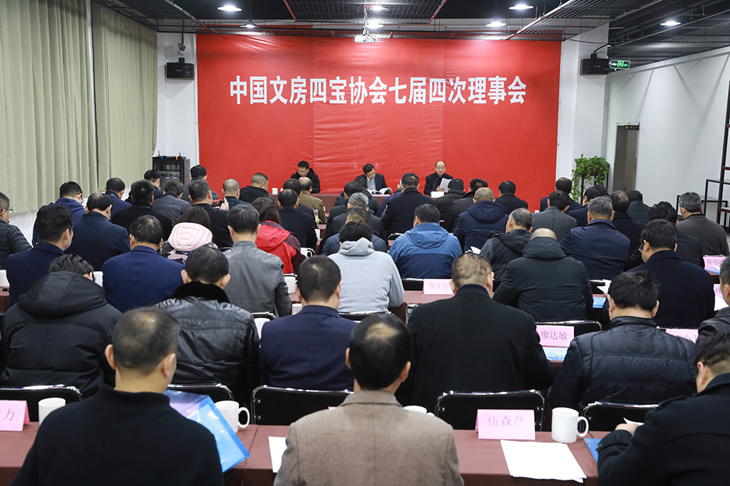 2020年12月11日,中国文房四宝协会七届四次理事会议在安徽省旌德县宣砚文化园召开。陈建国会长作2020年理事会工作报告。来自全国各地的近100名协会理事出席会议。与会代表审议并原则通过2020年理事会工作报告、2021年主要工作安排、2020年会费收支报告、《中国文房四宝技艺研学基地认定管理办法》、《全国文房四宝艺术博览会展位分配及管理办法》。会议由副会长兼秘书长米军主持。