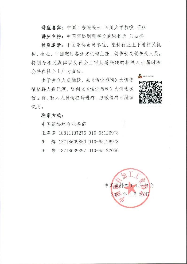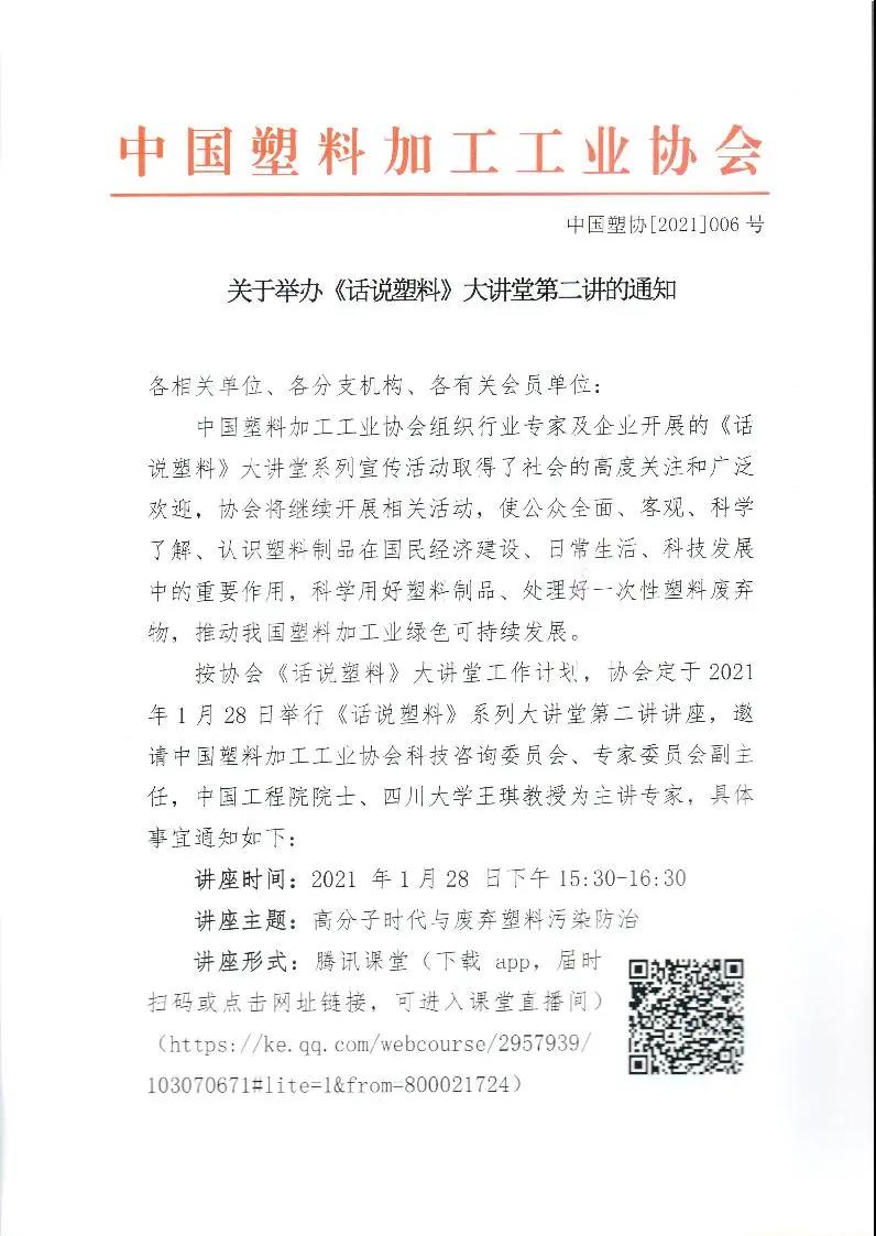 今后,中国塑料加工工业协会还将继续邀请专家、企业家,推出塑料相关主题讲座,敬请关注!