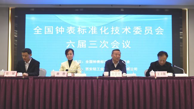 全国钟表标准化技术委员会(SAC/TC 160)六届三次会议于2023年11月21日至23日在西安市召开,会议由钟表标委会秘书处组办,西安轻工业钟表研究所有限公司协办。来自全国76个单位的委员、观察员、起草单位代表和嘉宾共97人参加了会议。中国钟表协会理事长、全国钟表标准化技术委员会主任委员张宏光、西安市市场监督管理局标准化管理处副处长赖静、西安轻工业钟表研究所有限公司总经理王立新出席了会议并致辞。