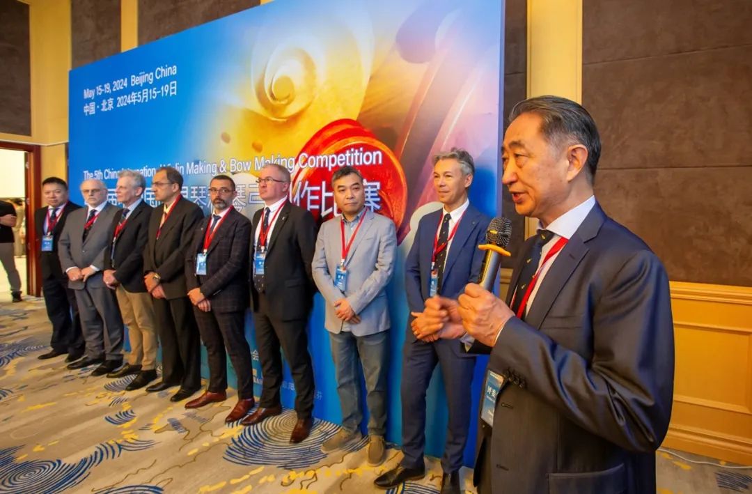 王世成在开幕致辞中分别感谢了北京市平谷区人民政府和东高村镇人民政府的大力支持,评审团队的倾情奉献。他表示,本届赛事规模盛大,不仅承袭并延续了前四届赛事的优秀传统,继续推动提琴文化的传播与交流,更在赛事规模、赛制创新、项目设置、国际交流和社会参与度方面迈上新台阶,呈现六个特色亮点:一是赛事规模创历史新高,充分展现国际提琴制作艺术蓬勃发展态势;二是报名国别和省市地区分布最广,彰显了其国际影响力;三是国内首次举办琴头现场制作比赛,激发参赛选手的艺术创作激情;四是传世名琴“多利亚王子”展现历史文化精髓,增添赛事深厚底蕴;五是专业学术讲座创新探索,为参赛者和观众提供宝贵学习机会;六是配套活动提升社会参与度,为提琴制作艺术文化普及做出积极贡献。他强调,这场比赛不仅是一场技艺的较量,更是一次文化的交流与心灵的对话。他希望比赛能推动提琴制作人才队伍的建设,促进国际间的交流,推动提琴艺术的创新进步。