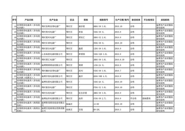 据淄博市市场监督管理局网站2020年1月3日消息,2019年9月至11月,淄博市市场监督管理局组织开展了家用厨房电器具产品质量市监督抽查。本次共抽查了全市29家企业生产的29批次产品,有3家企业生产的3批次产品不合格。