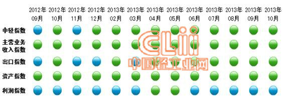 图2 2012.9—2013.10陶瓷行业景气指数预警信号灯变化态势