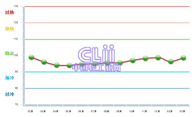 发布2014年3月中轻文教体育用品行业景气指数。3月,中轻文体景气指数为98.57,其中:主营业务收入景气指数为95.04,出口景气指数为106.49,资产景气指数为96.34,利润景气指数为103..75(图1-1)
