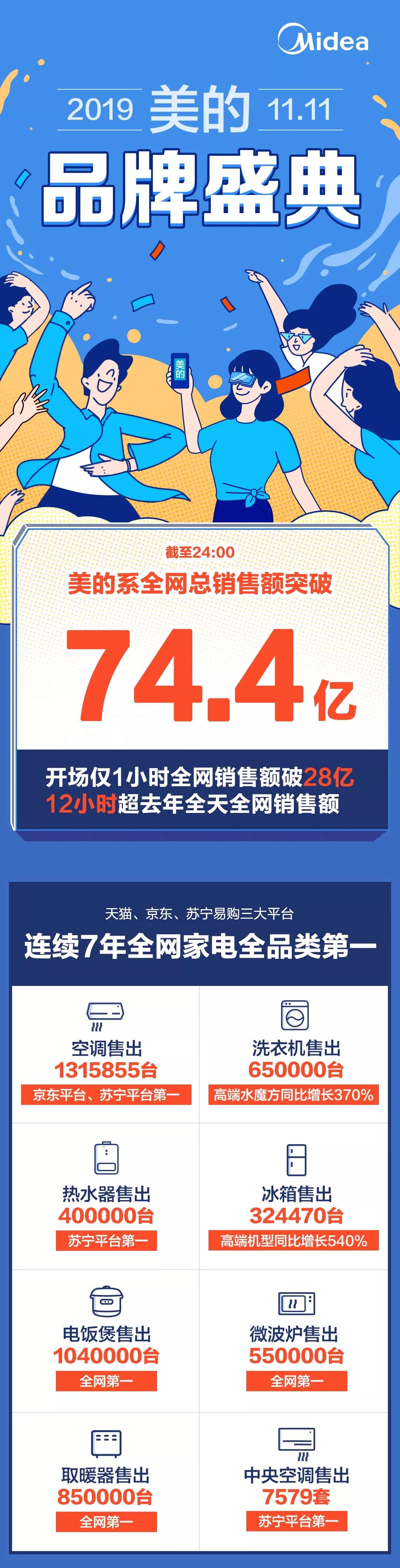 11.11全天,美的系全网总销售额突破74亿!
