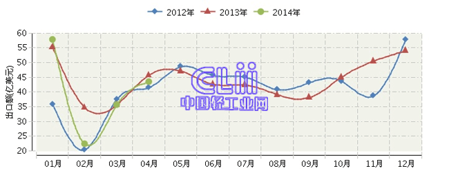 2014年全国家具行业月度出口额及同比