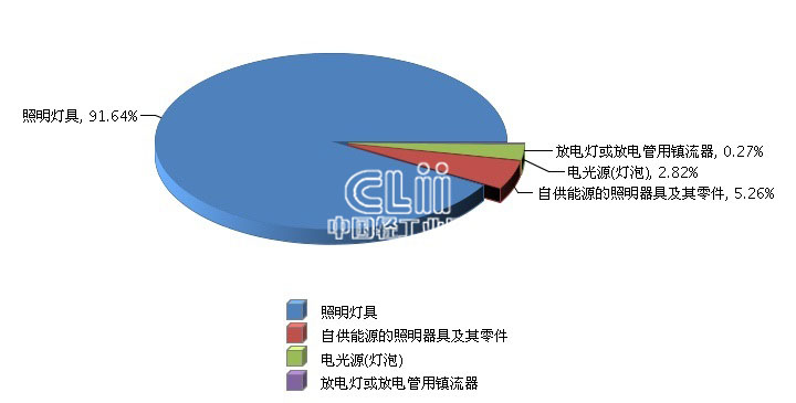2014年1~3月照明行业累计出口额商品结构分布情况