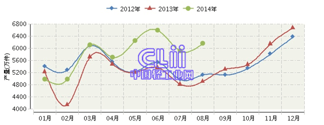 根据国家统计局公布数据:2014年1~8月,全国家具行业累计完成产量49954.60万件,同比增长4.01%。其中:8月份家具产量同比增长5.98%。