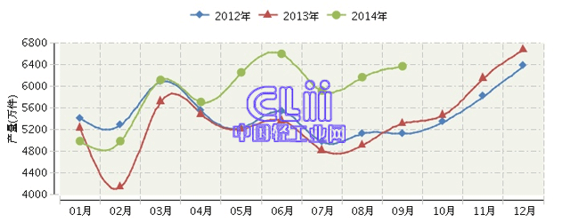 根据国家统计局公布数据:2014年1~9月,全国家具行业累计完成产量56245.39万件,同比增长3.74%。其中:9月份家具产量同比增长2.46%。