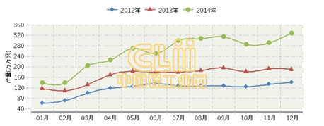 2014年全国发光二极管(LED)行业连续三年月度产量对比