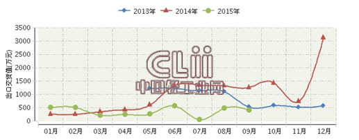 2015年1~9月,河南照明灯具制造行业累计完成出口交货值2,764.00万元,同比增长-70.37%。其中: 9月份完成出口交货值411.3万元,同比增长-68.45%。