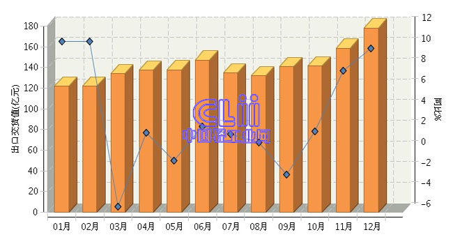 根据国家统计局公布数据:2015年1~12月,全国家具行业的累计出口交货值为1720.13亿元,同比增长5.02%。其中:12月份出口交货值同比增长9.84%。